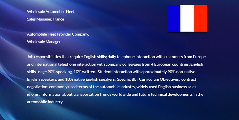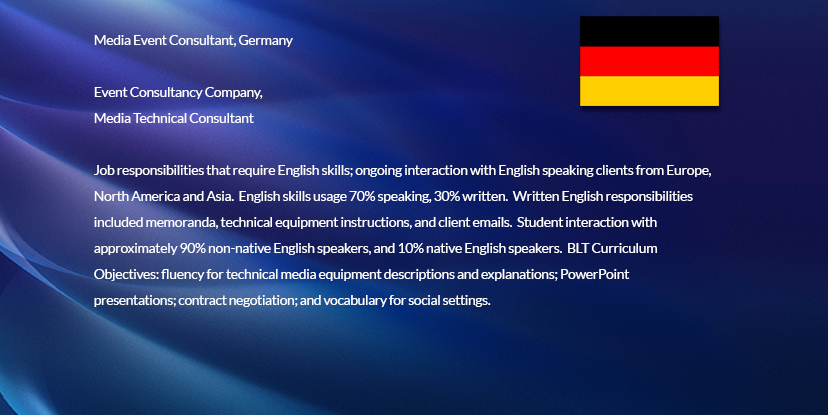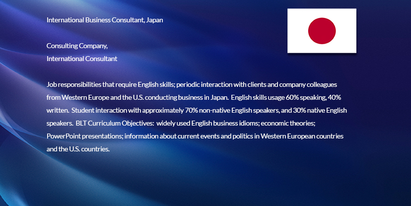 When hiring employees, companies always consider the prospective employee’s business and academic background and experience. Just as important, companies consider whether the employee is likeable and can develop positive personal relationships with colleagues, clients and customers. Without the requisite language skills, it is impossible for employees to develop positive personal relationships. Many employees competing in international business must be able to speak a second language in order to develop relationships similar to speaking the employee’s native language. BLT student success stories clearly show how BLT proven methodology has provided internationally involved business people with language skills to develop personal relationships based on trust.
